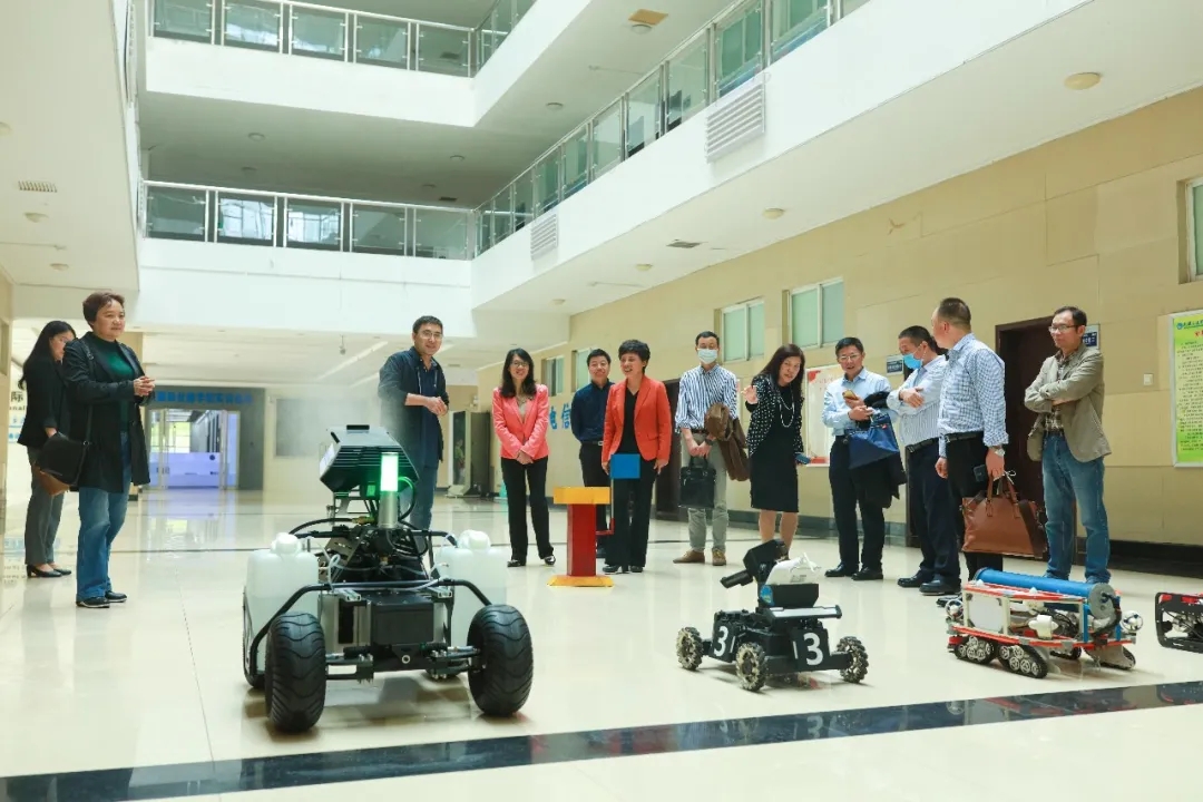 校长王进思代表学校对民盟省委调研组的到来表示欢迎。王校长一行陪同调研组先后参观了中兴国际丝路学院、重型实训室,汽车学院ASEP校企合作示范教学中心、世界技能大赛移动机器人项目国际研究中心等校企共建实训基地。