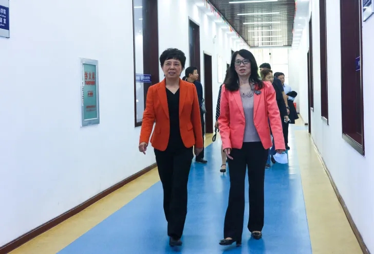| 陈少敏副主委(左)和王进思校长(右)参观中兴国际丝路学院 |