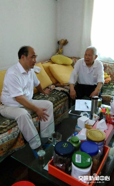 离休干部丁洪卿已90高龄,看到离退处工作人员到来十分高兴,工作人员在送上慰问品的同时,还向丁老通报了学校近期工作情况和上级相关政策,同时希望丁老继续支持学校的建设与发展,为学校的发展多提宝贵意见和建议。离退处还专门到长航总医院看望住院的离休干部王芝琴。