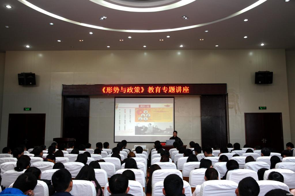 新闻网讯(记者 余雨龙 通讯员 左婷)为深入贯彻落实十九大精神,教育引导学生正确理解新时代、新指南、新战略、新作为,12月20日下午,校党委书记杨震在行政楼一号会议室作“形势与政策”专题讲座,思政课部主任刘红卫主持讲座,思政课部全体教师、各二级学院师生代表共计230余人参加。