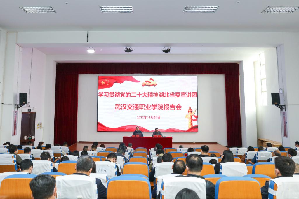 新闻网讯(记者 汪云凤)11月24日下午,学校在明德楼223报告厅举办学习贯彻党的二十大精神报告会。中共湖北省委直属机关工委副书记,湖北省第十二次党代会代表,湖北省委宣讲团成员邹德文教授来校作学习贯彻党的二十大精神辅导报告。报告会由校长周慎主持。学校党委理论学习中心组成员、中层干部、马克思主义学院教师参会。